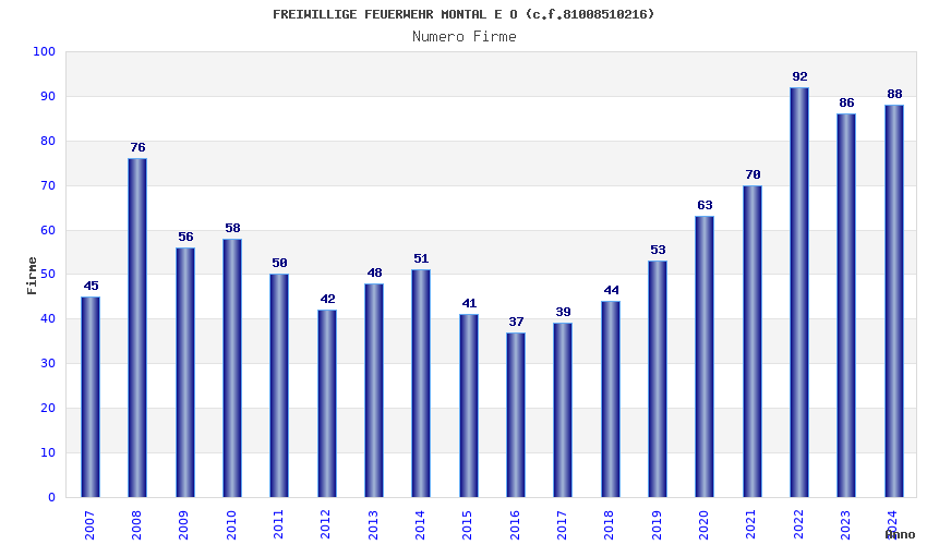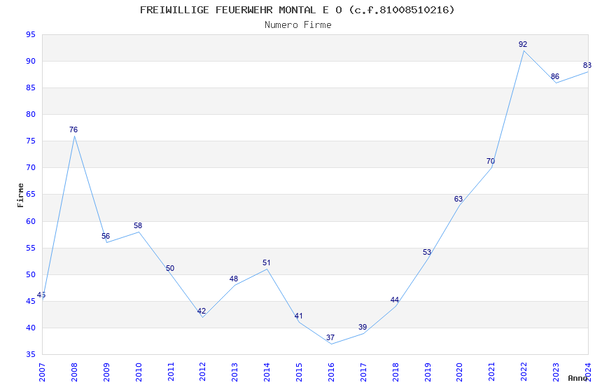 | 2022 | 92 | 3.827,71 | 41,61 | 13.632 | 331 | 181 | 2 |