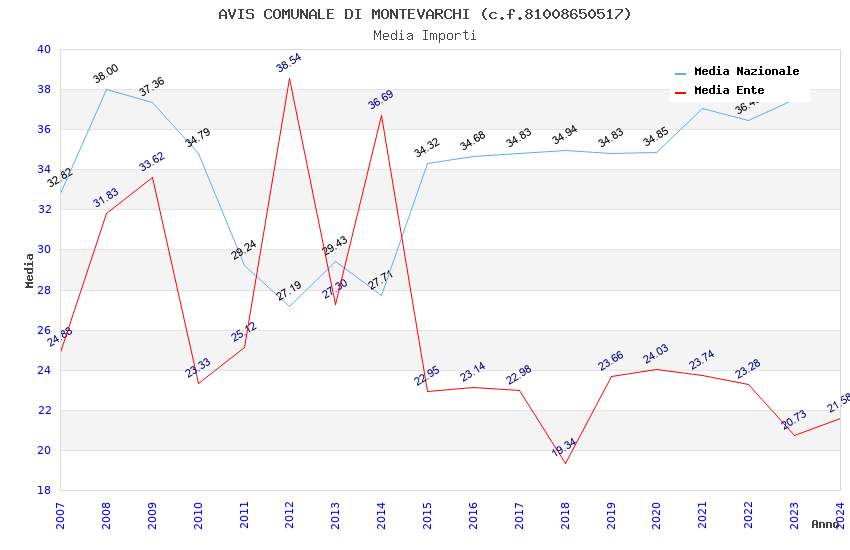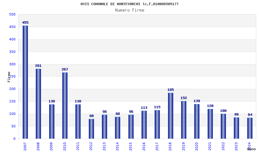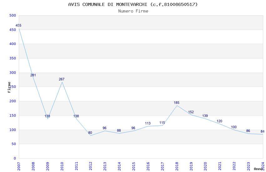 | Anno | Firme | Importi | Media | Naz. | Reg. | Prov. | Comu. |