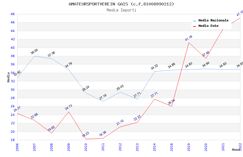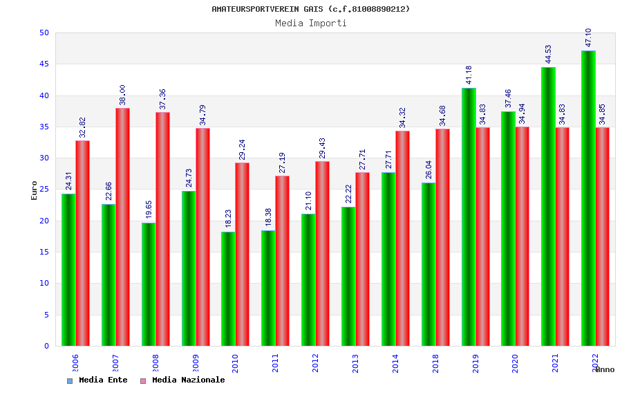 | Anno | Firme | Importi | Media | Naz. | Reg. | Prov. | Comu. |