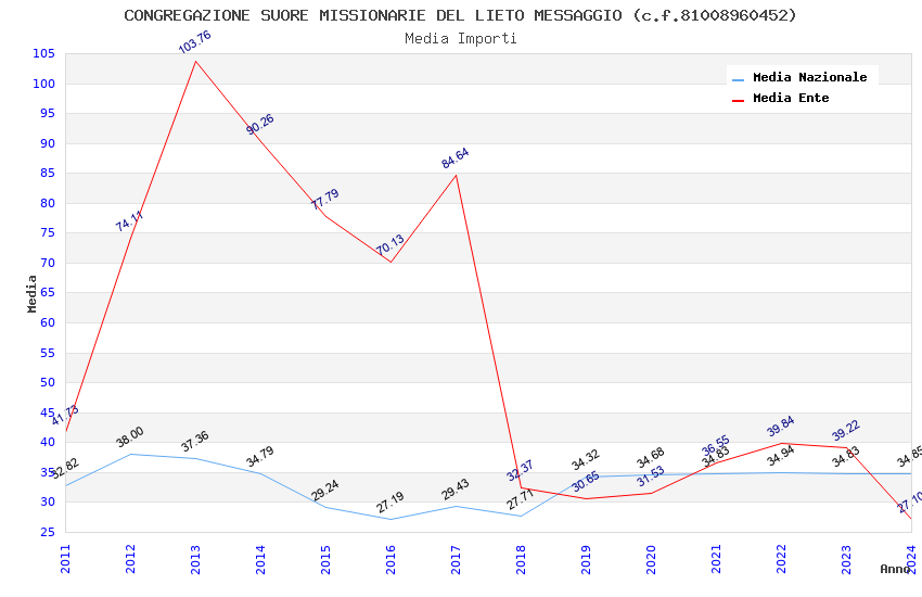 | Anno | Firme | Importi | Media | Naz. | Reg. | Prov. | Comu. |