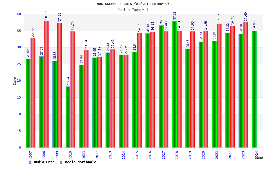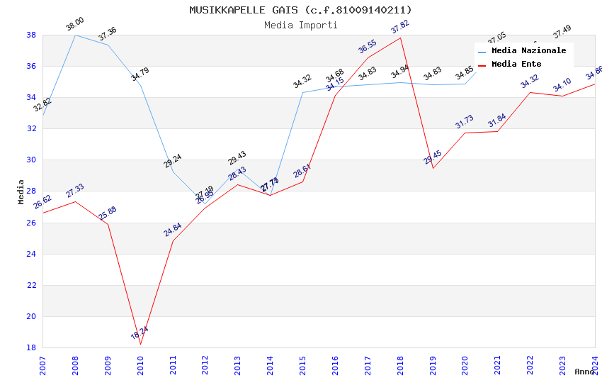 | Anno | Firme | Importi | Media | Naz. | Reg. | Prov. | Comu. |