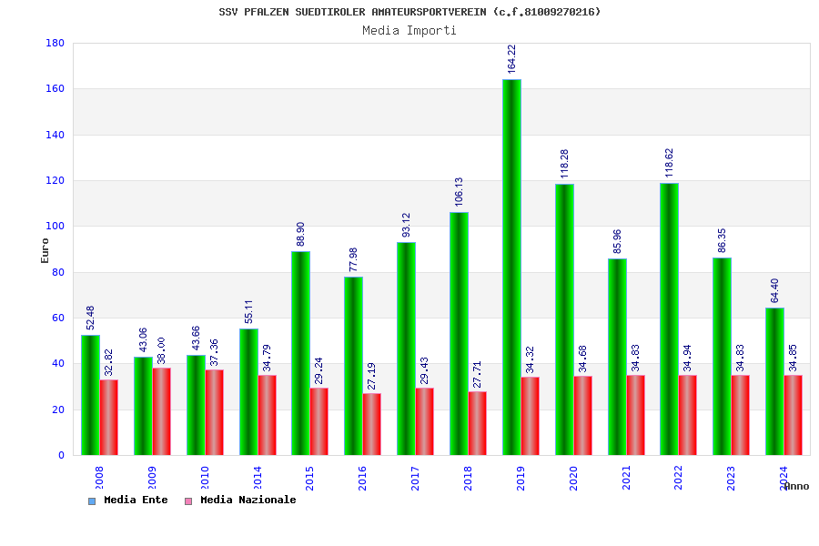 | Anno | Firme | Importi | Media | Naz. | Reg. | Prov. | Comu. |