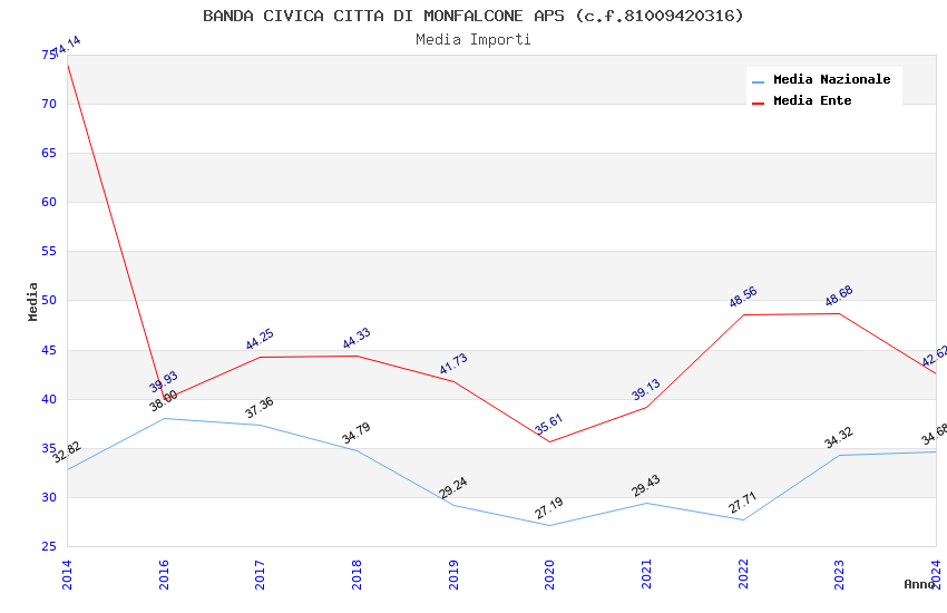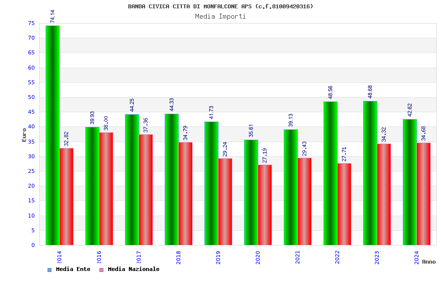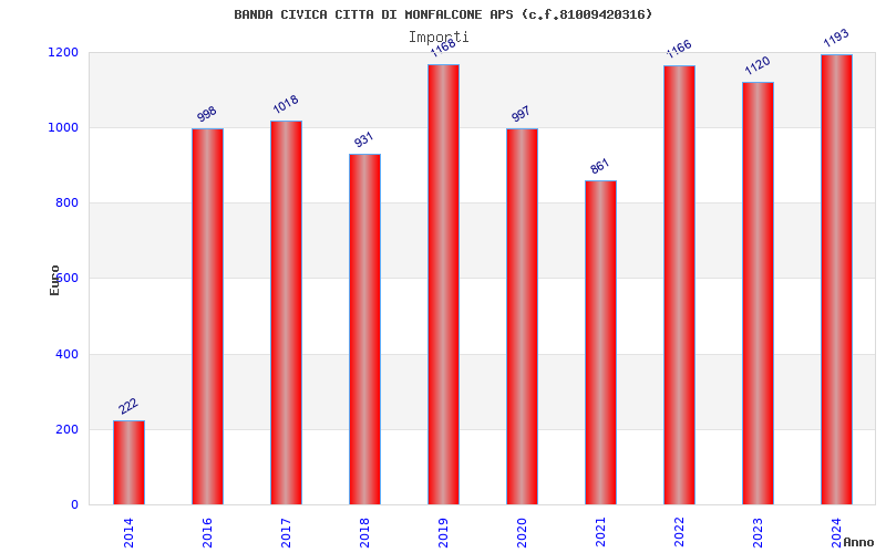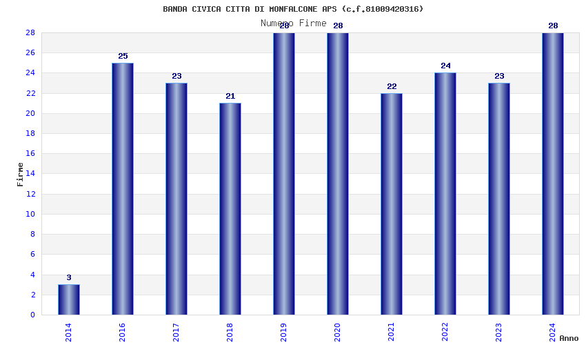 | Anno | Firme | Importi | Media | Naz. | Reg. | Prov. | Comu. |