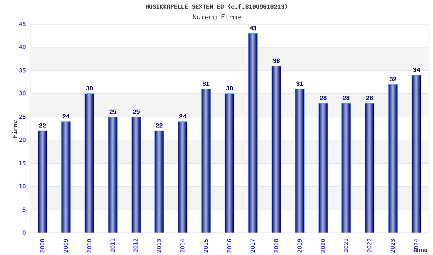 | Anno | Firme | Importi | Media | Naz. | Reg. | Prov. | Comu. |
