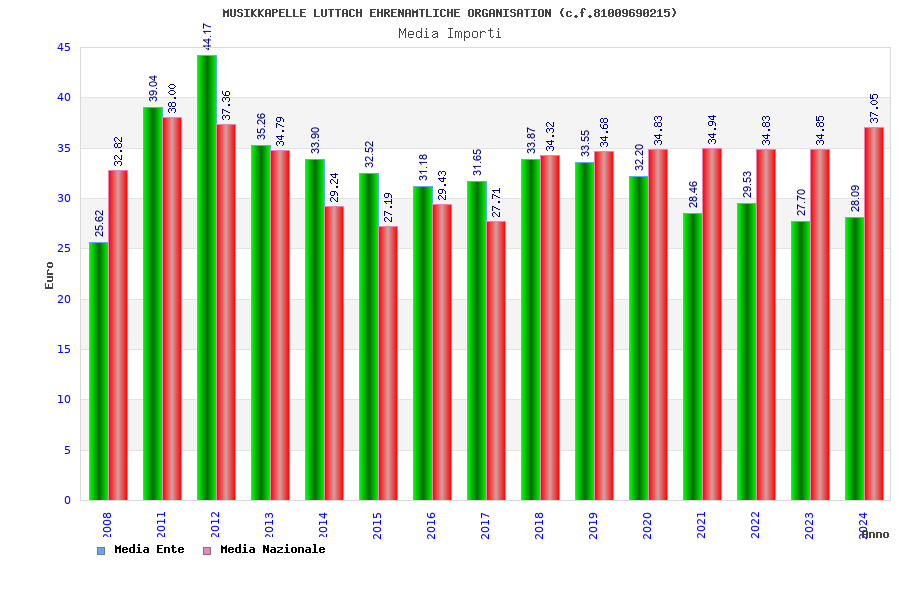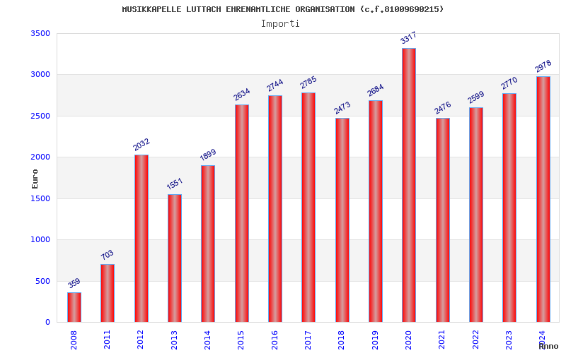 | Anno | Firme | Importi | Media | Naz. | Reg. | Prov. | Comu. |