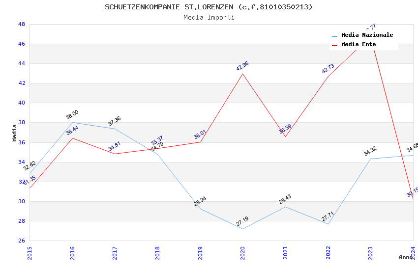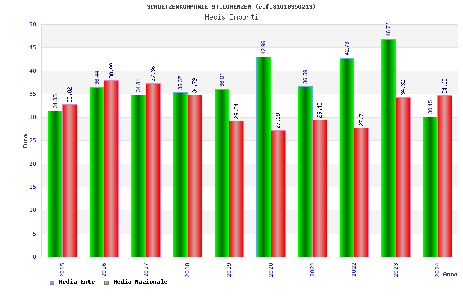 | Anno | Firme | Importi | Media | Naz. | Reg. | Prov. | Comu. |