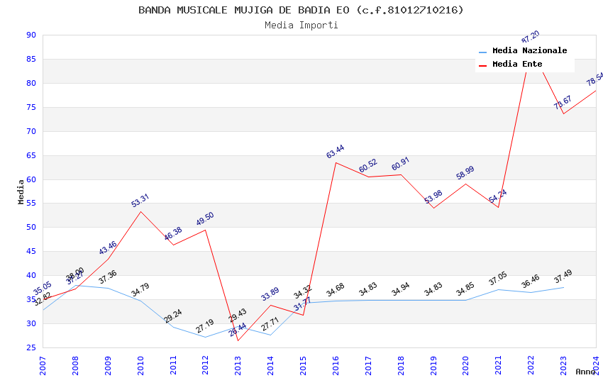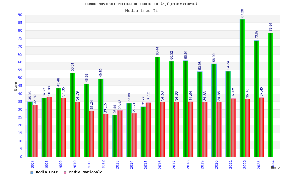 | Anno | Firme | Importi | Media | Naz. | Reg. | Prov. | Comu. |