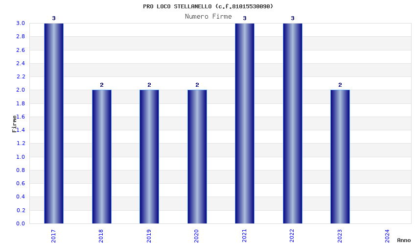 | Anno | Firme | Importi | Media | Naz. | Reg. | Prov. | Comu. |