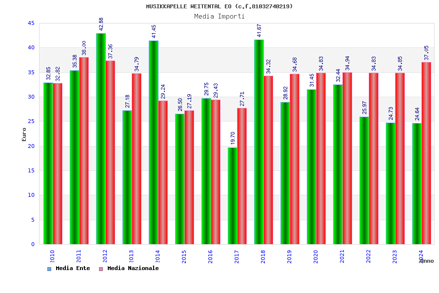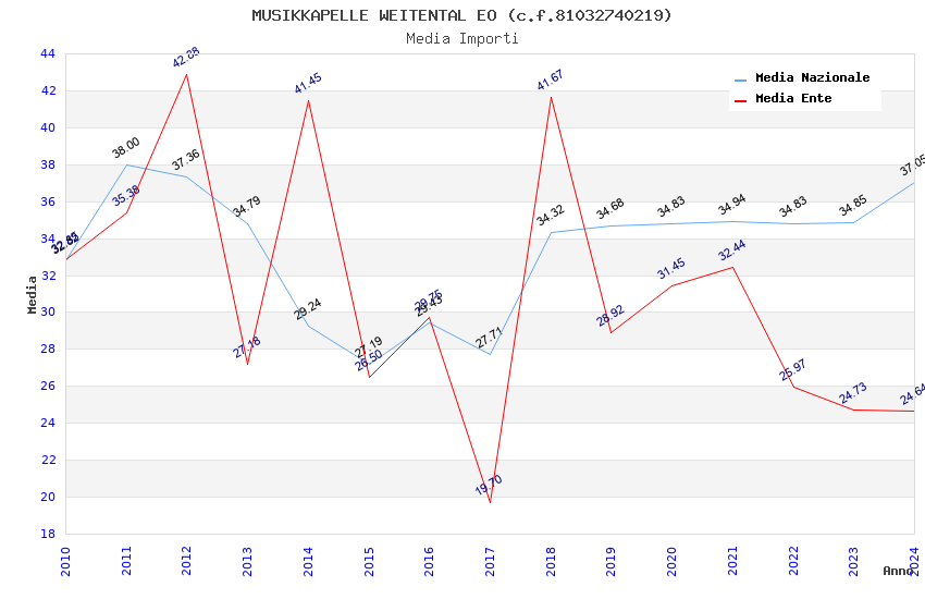 | Anno | Firme | Importi | Media | Naz. | Reg. | Prov. | Comu. |