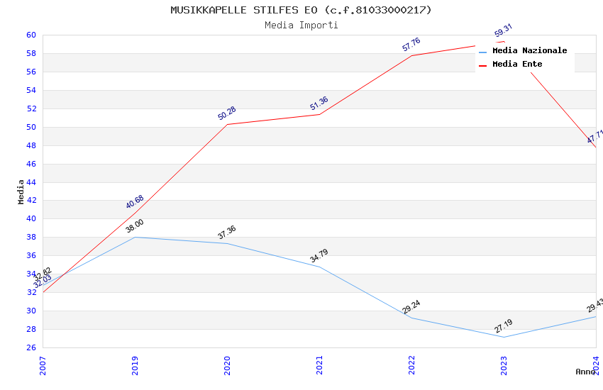 | Anno | Firme | Importi | Media | Naz. | Reg. | Prov. | Comu. |