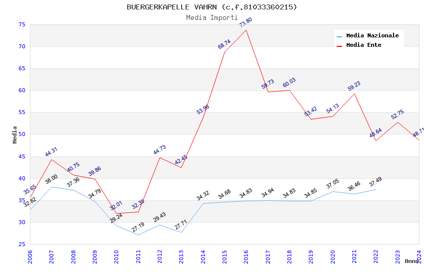 | Anno | Firme | Importi | Media | Naz. | Reg. | Prov. | Comu. |