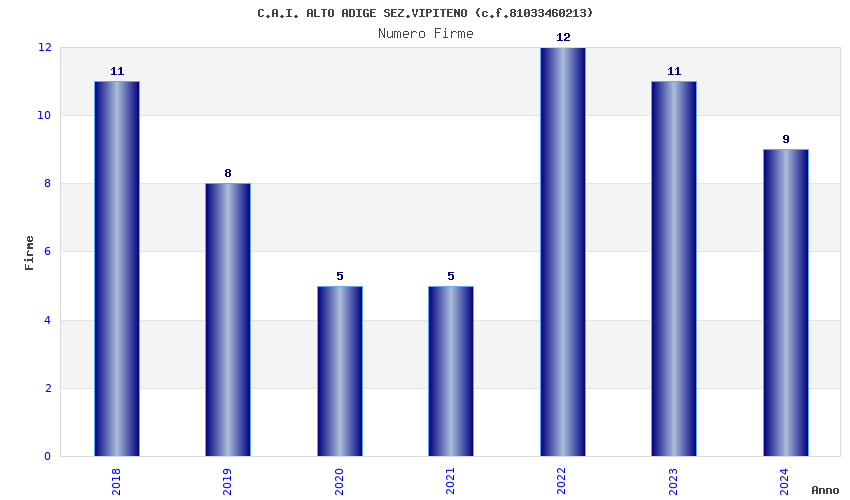 | Anno | Firme | Importi | Media | Naz. | Reg. | Prov. | Comu. |