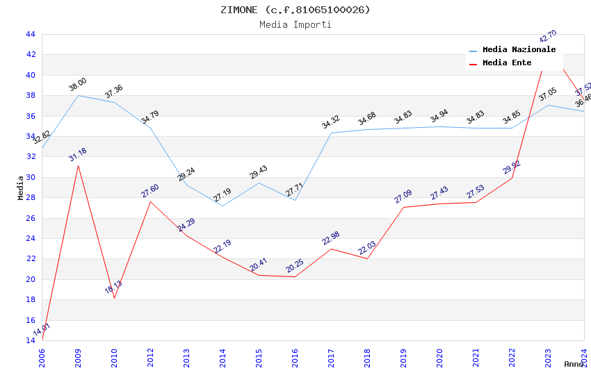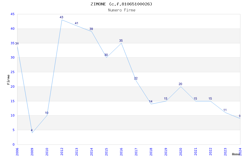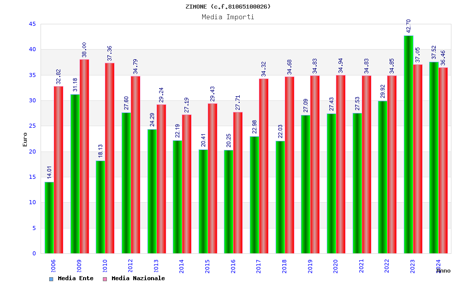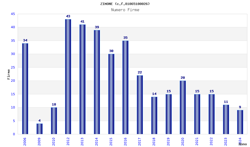 | Anno | Firme | Importi | Media | Naz. | Reg. | Prov. | Comu. |