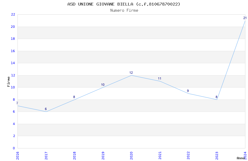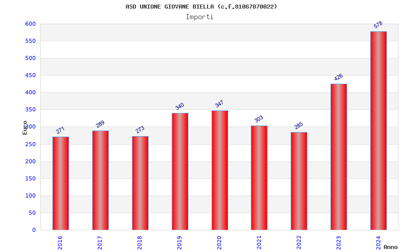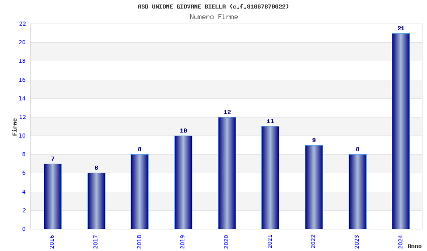 | Anno | Firme | Importi | Media | Naz. | Reg. | Prov. | Comu. |