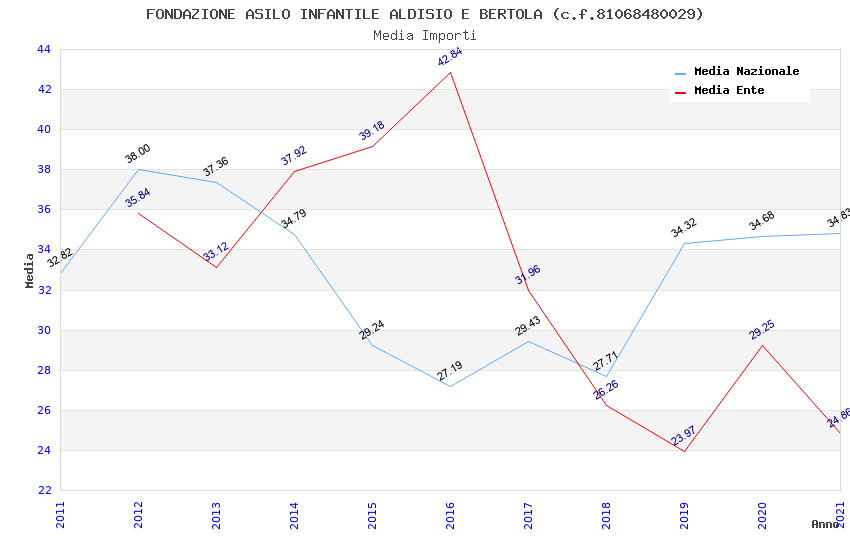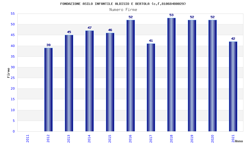 | Anno | Firme | Importi | Media | Naz. | Reg. | Prov. | Comu. |