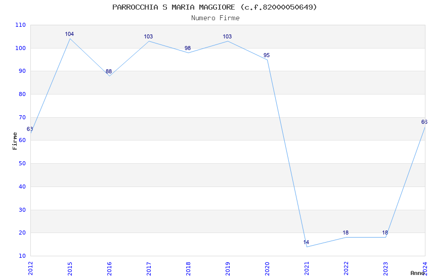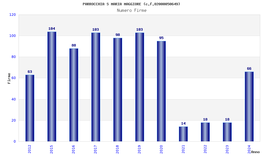 | Anno | Firme | Importi | Media | Naz. | Reg. | Prov. | Comu. |