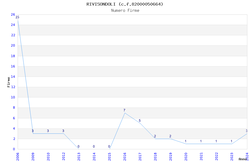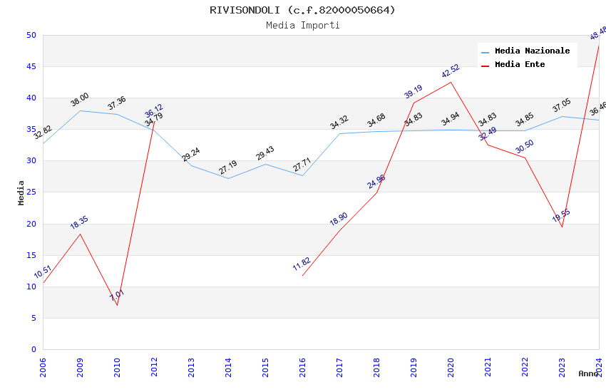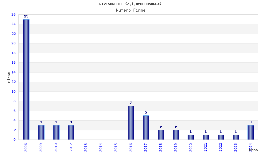 | Anno | Firme | Importi | Media | Naz. | Reg. | Prov. | Comu. |