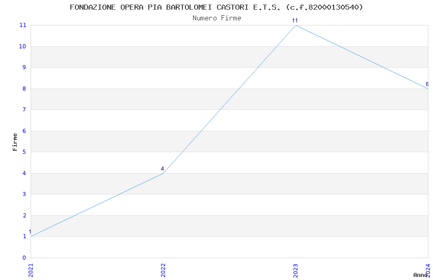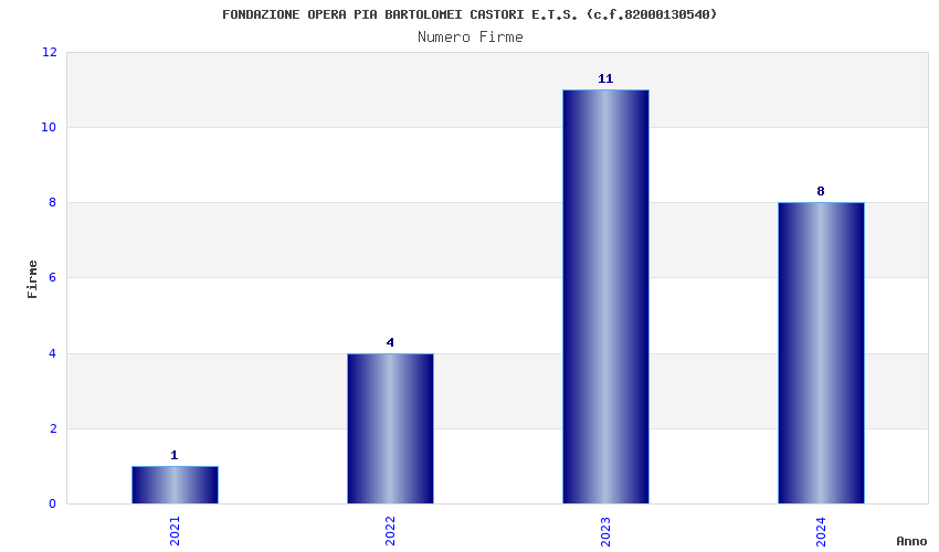 | Anno | Firme | Importi | Media | Naz. | Reg. | Prov. | Comu. |