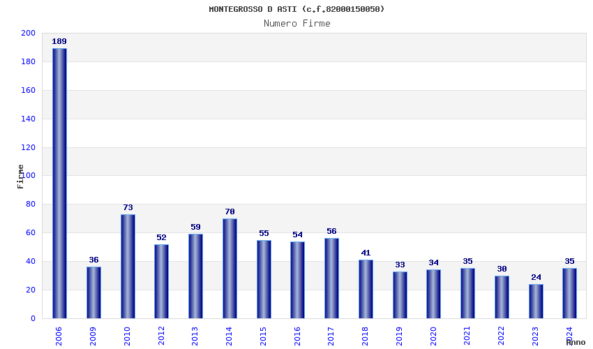 Anno Firme Importi Media Naz. Reg. Prov. Comu.