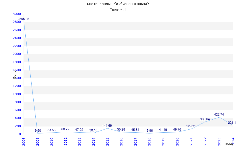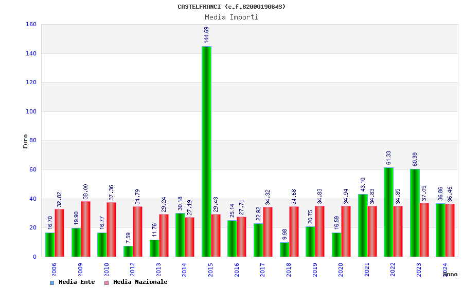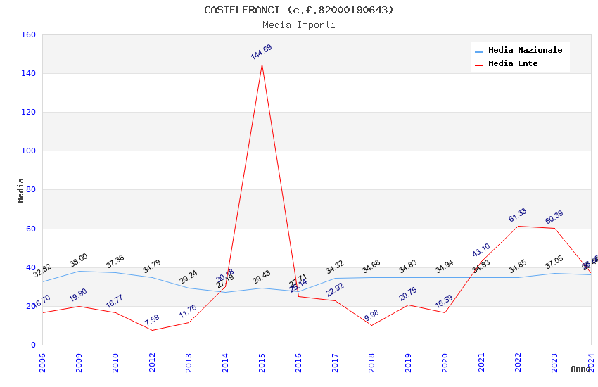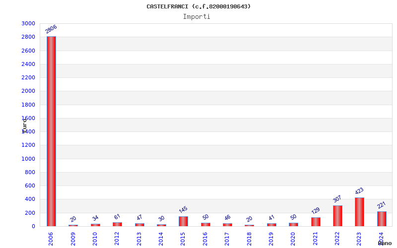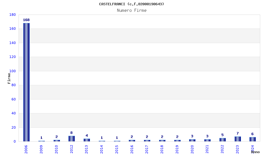 | Anno | Firme | Importi | Media | Naz. | Reg. | Prov. | Comu. |