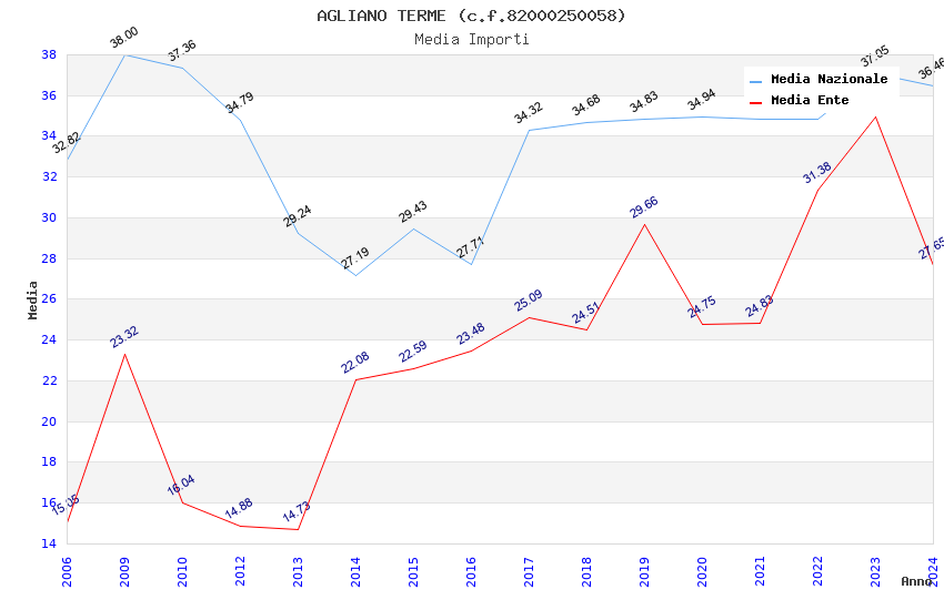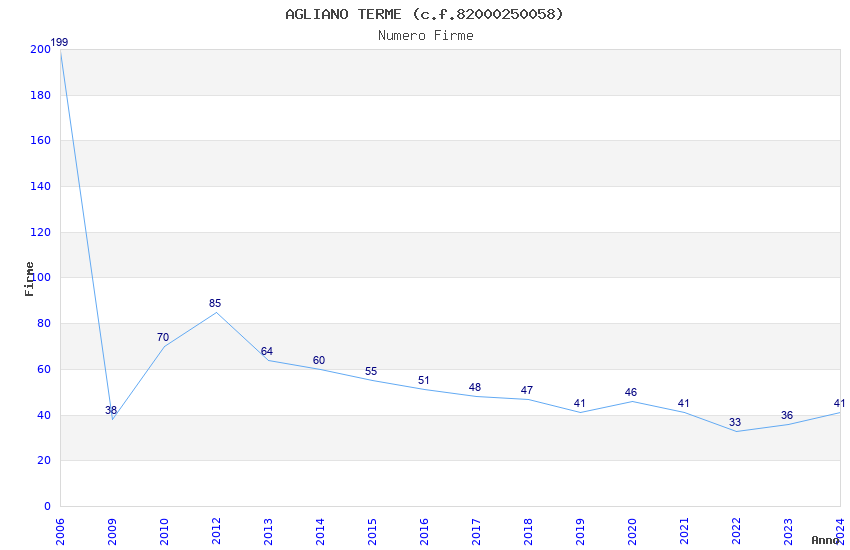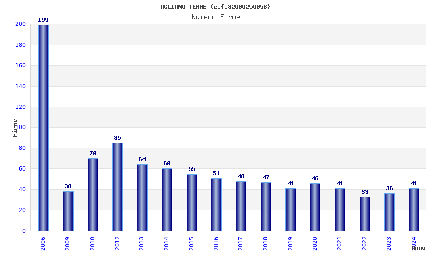 | Anno | Firme | Importi | Media | Naz. | Reg. | Prov. | Comu. |
