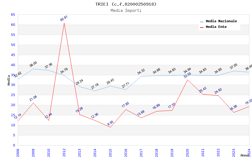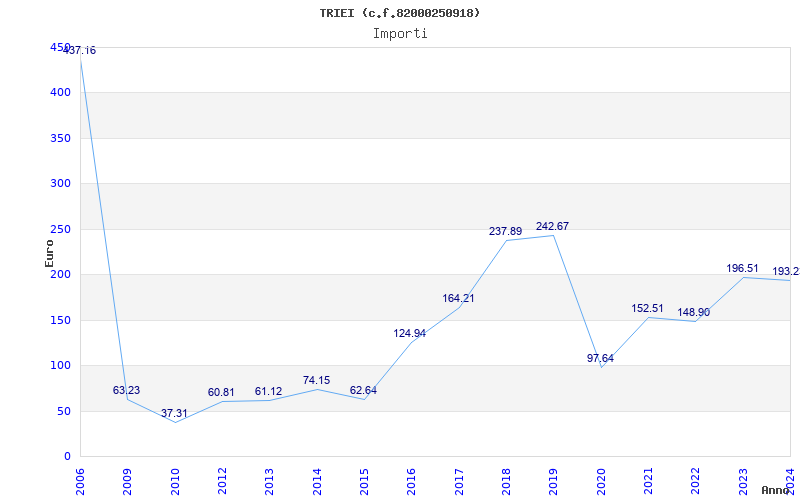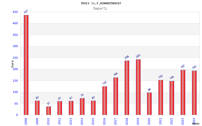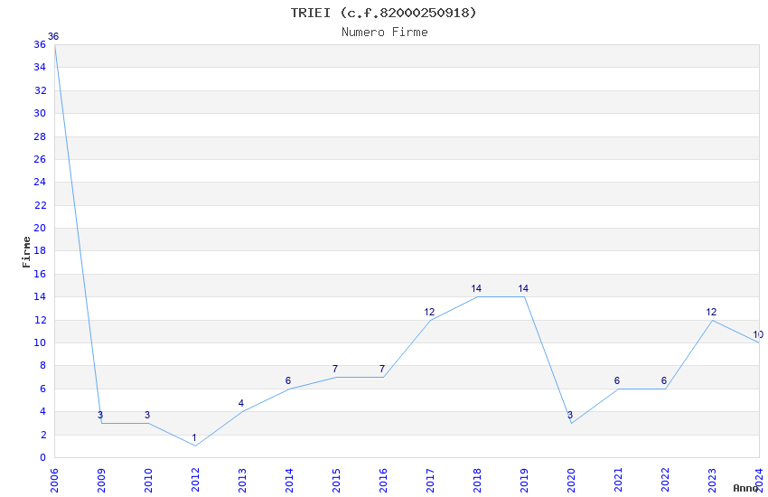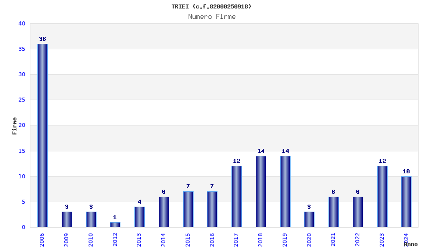 | Anno | Firme | Importi | Media | Naz. | Reg. | Prov. | Comu. |