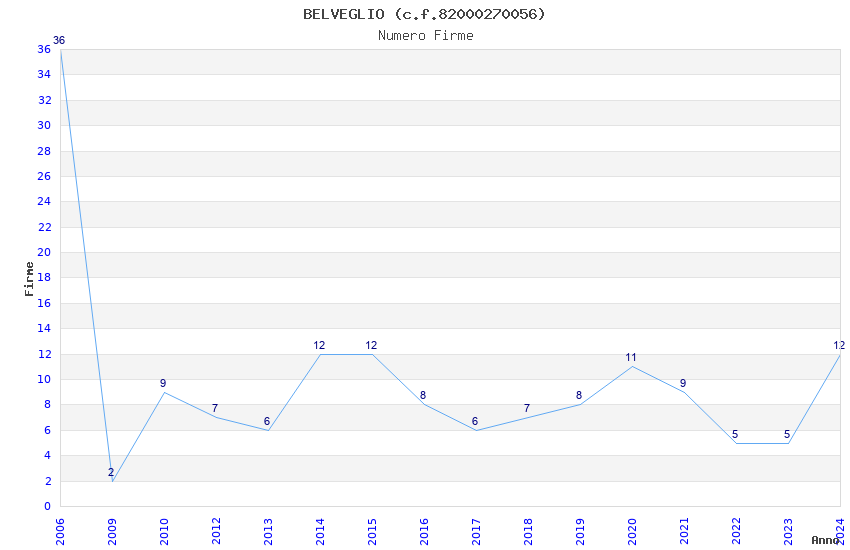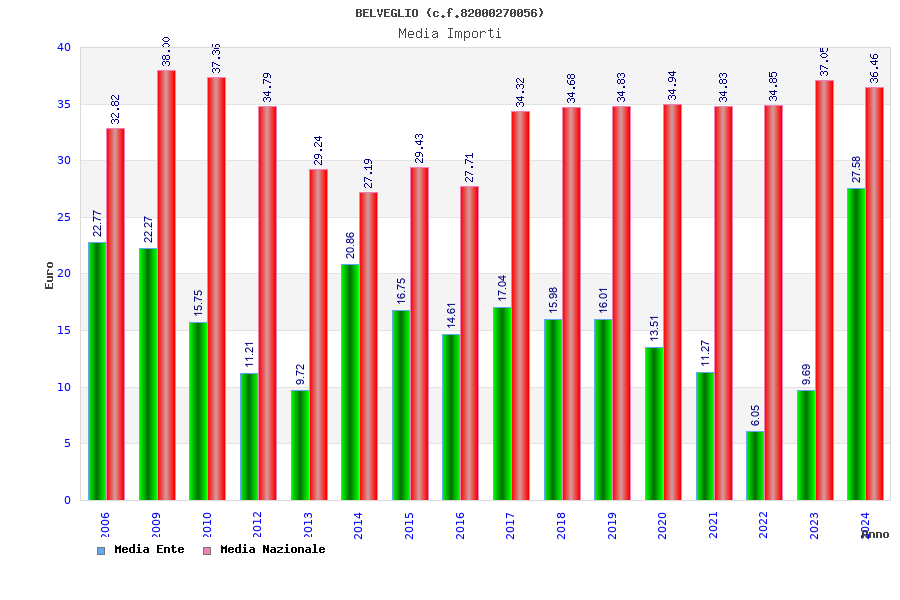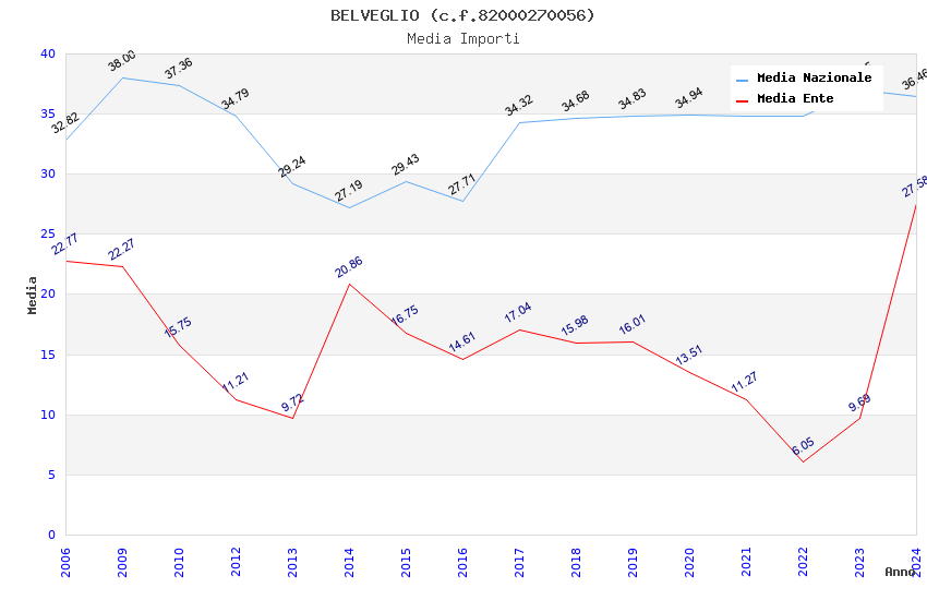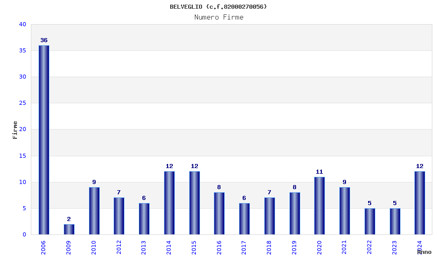 | Anno | Firme | Importi | Media | Naz. | Reg. | Prov. | Comu. |