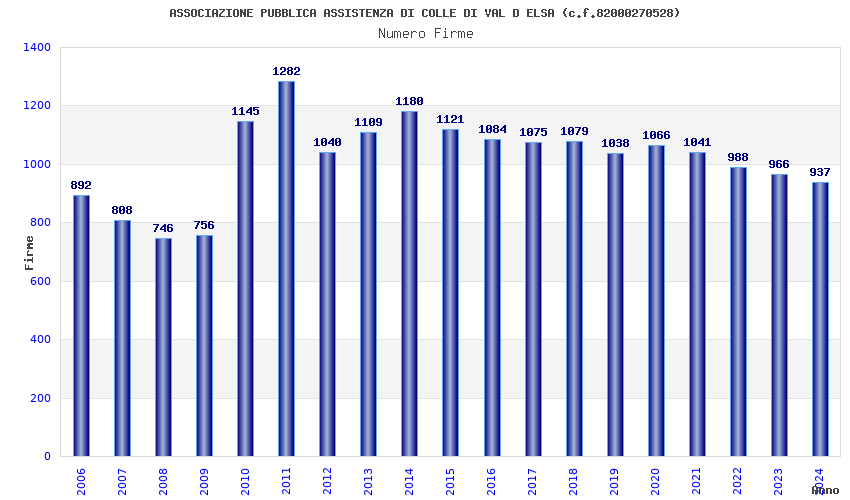 | Anno | Firme | Importi | Media | Naz. | Reg. | Prov. | Comu. |