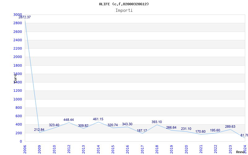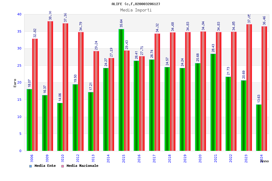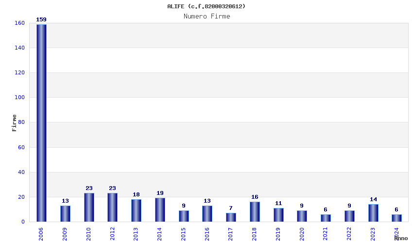 | Anno | Firme | Importi | Media | Naz. | Reg. | Prov. | Comu. |