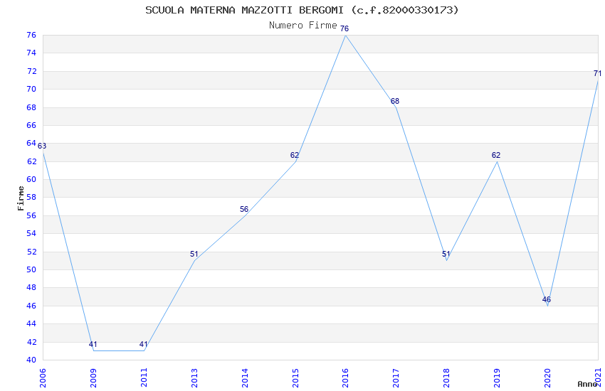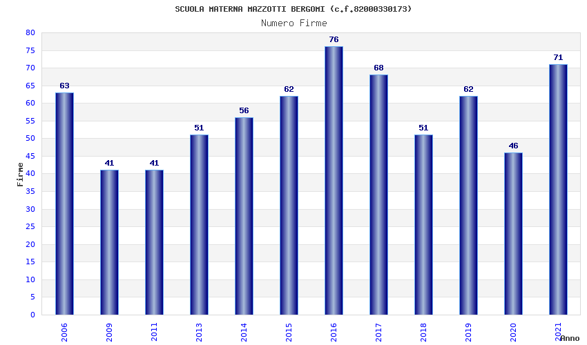 | Anno | Firme | Importi | Media | Naz. | Reg. | Prov. | Comu. |