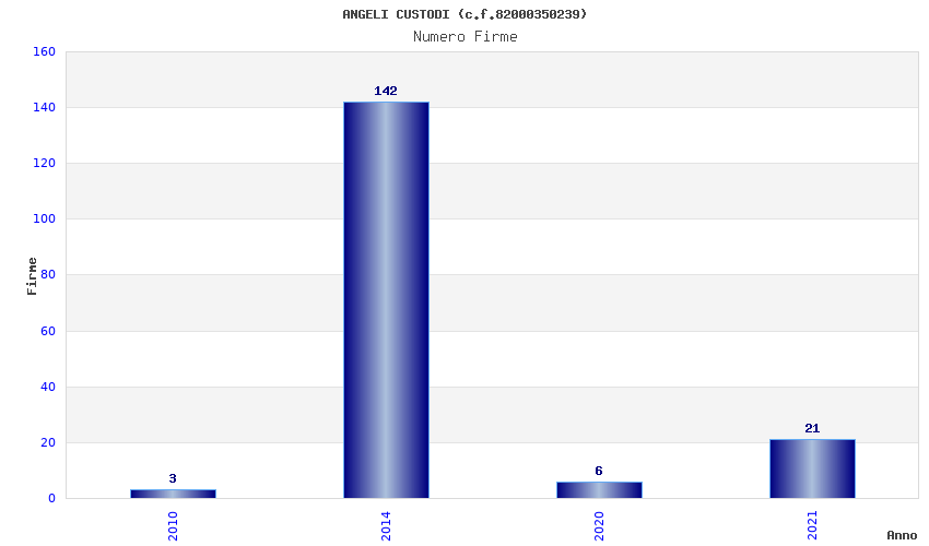 | Anno | Firme | Importi | Media | Naz. | Reg. | Prov. | Comu. |