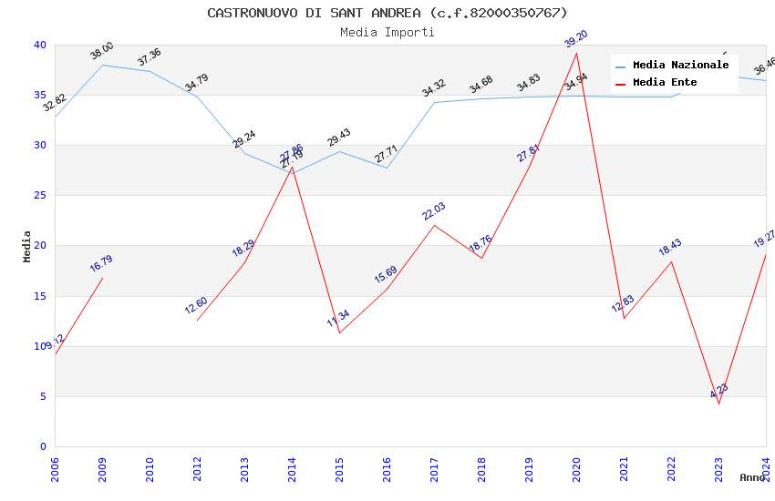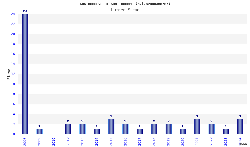 | Anno | Firme | Importi | Media | Naz. | Reg. | Prov. | Comu. |
