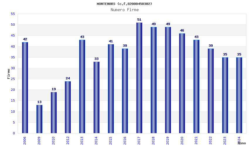 Anno Firme Importi Media Naz. Reg. Prov. Comu.
