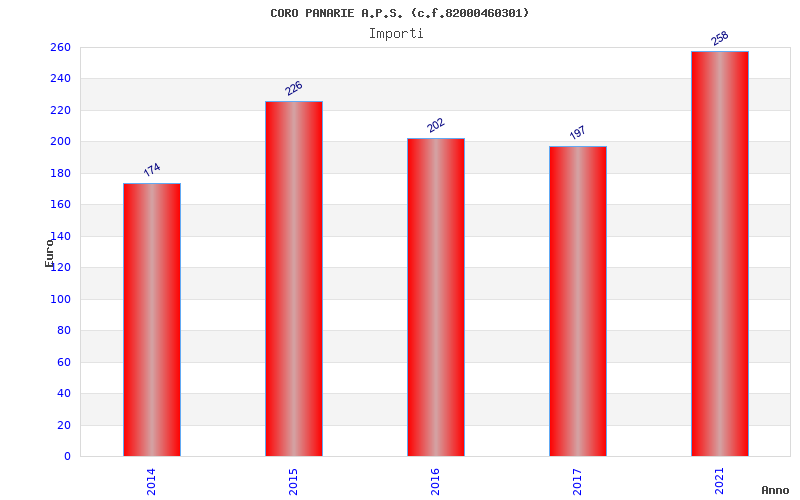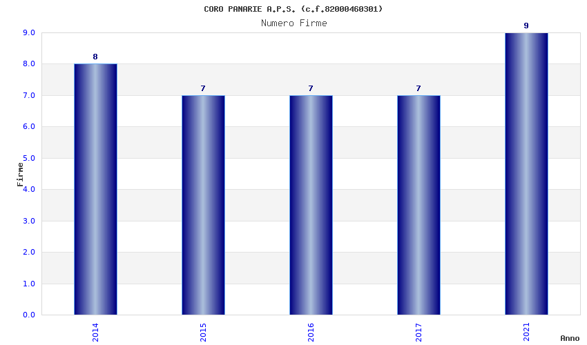 | Anno | Firme | Importi | Media | Naz. | Reg. | Prov. | Comu. |