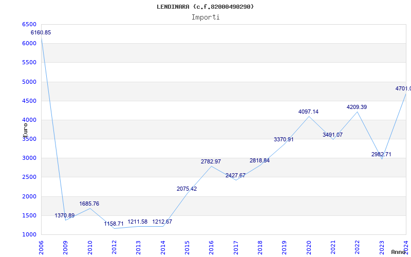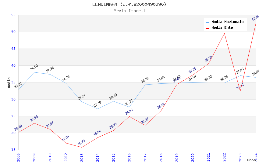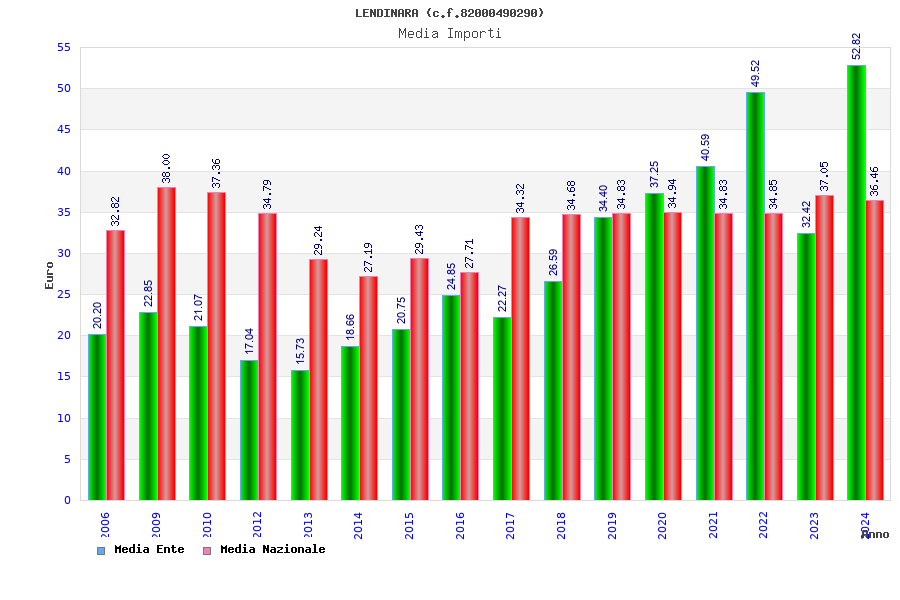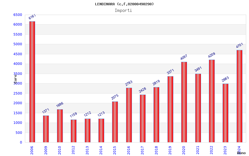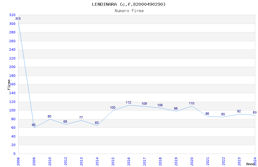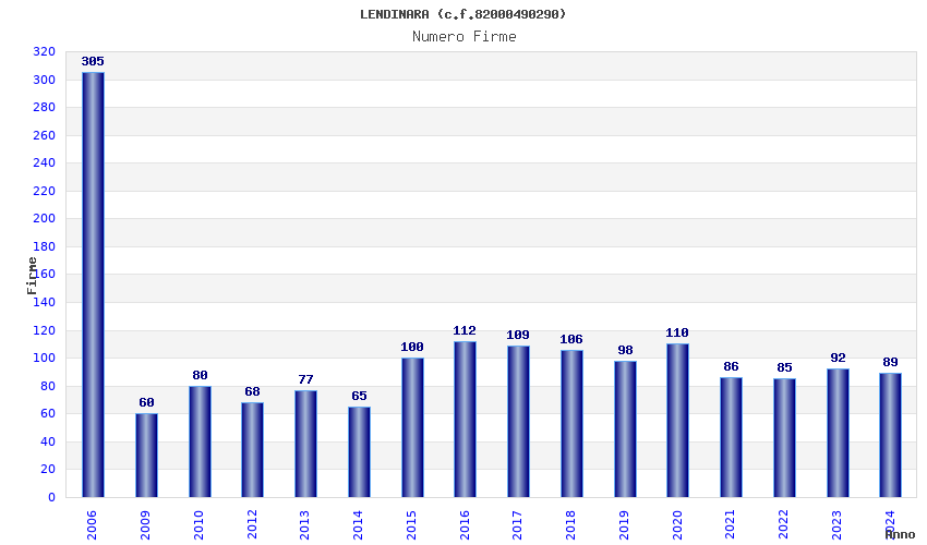 | Anno | Firme | Importi | Media | Naz. | Reg. | Prov. | Comu. |