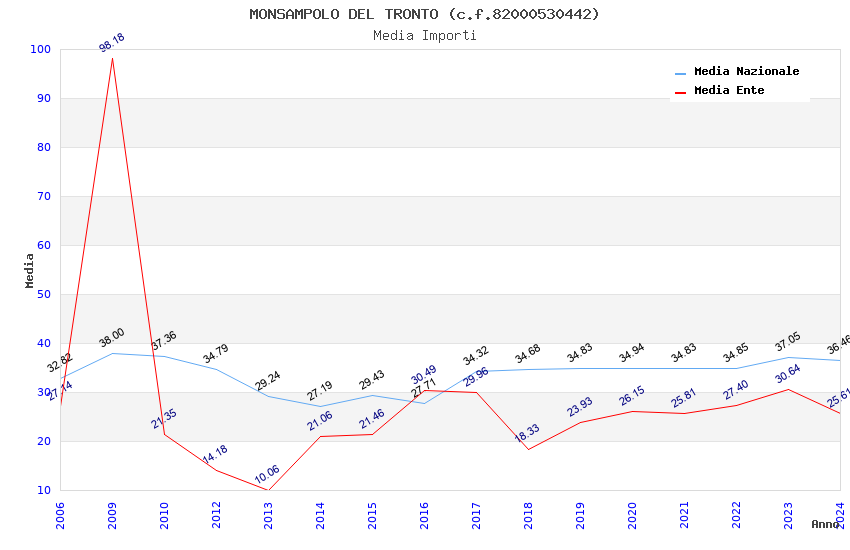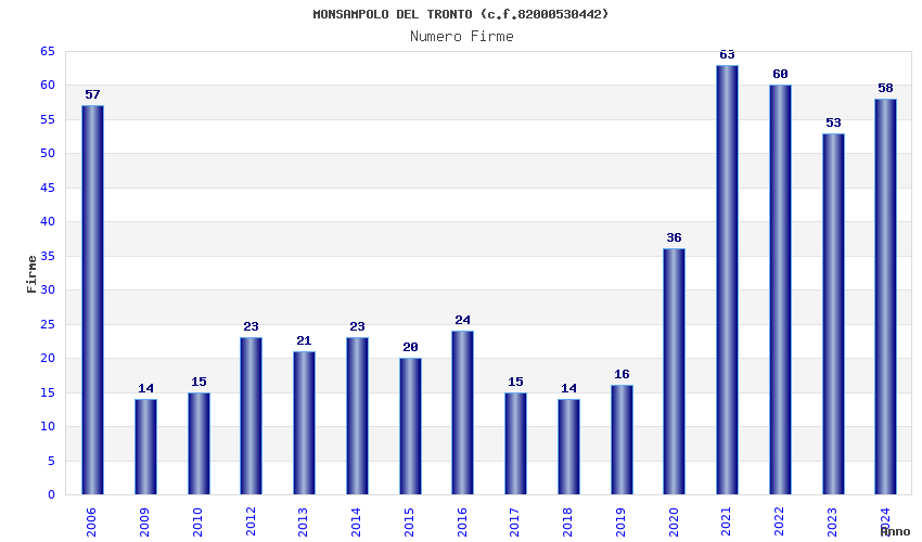 | Anno | Firme | Importi | Media | Naz. | Reg. | Prov. | Comu. |