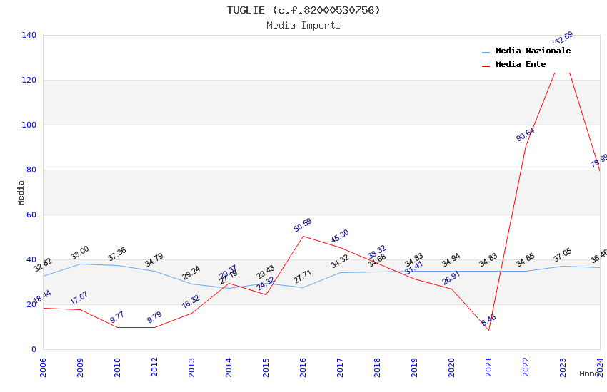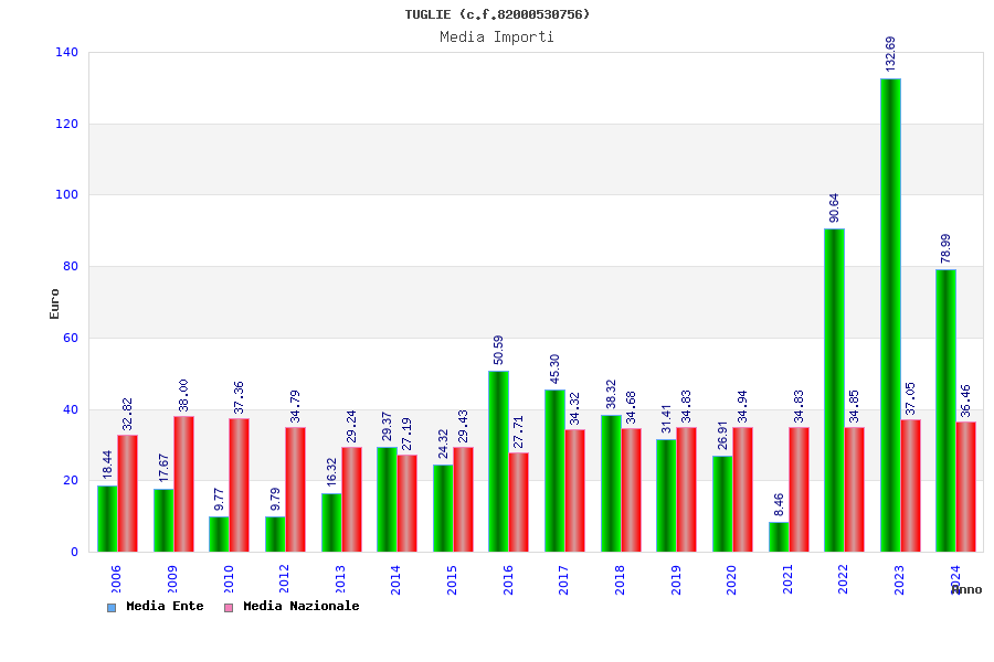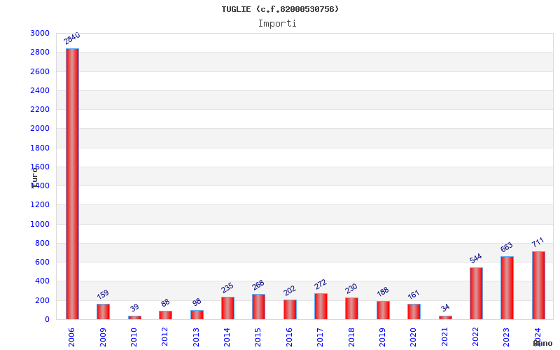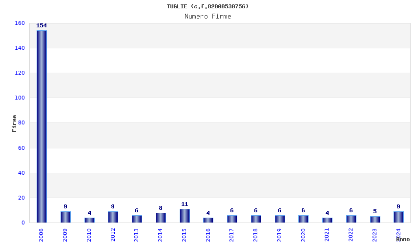| Anno | Firme | Importi | Media | Naz. | Reg. | Prov. | Comu. |