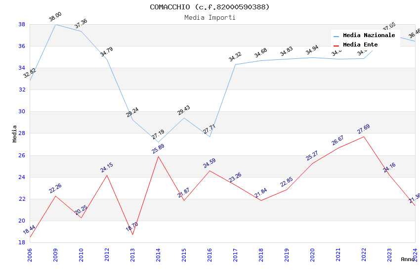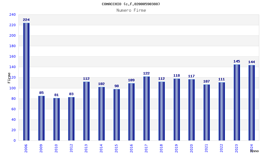 | Anno | Firme | Importi | Media | Naz. | Reg. | Prov. | Comu. |