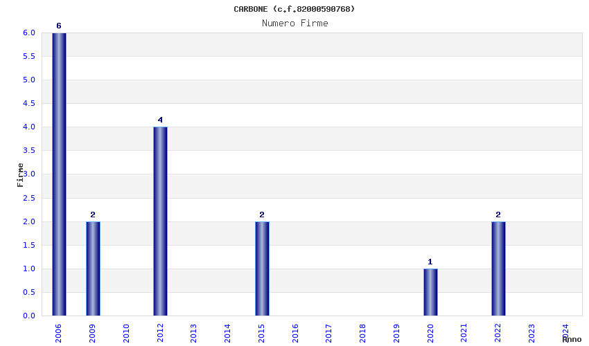 | Anno | Firme | Importi | Media | Naz. | Reg. | Prov. | Comu. |