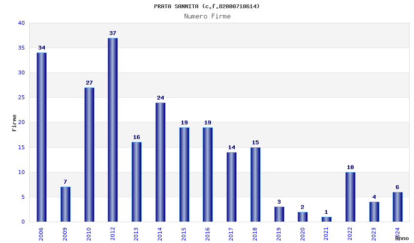 | Anno | Firme | Importi | Media | Naz. | Reg. | Prov. | Comu. |