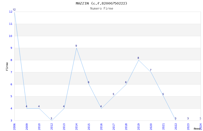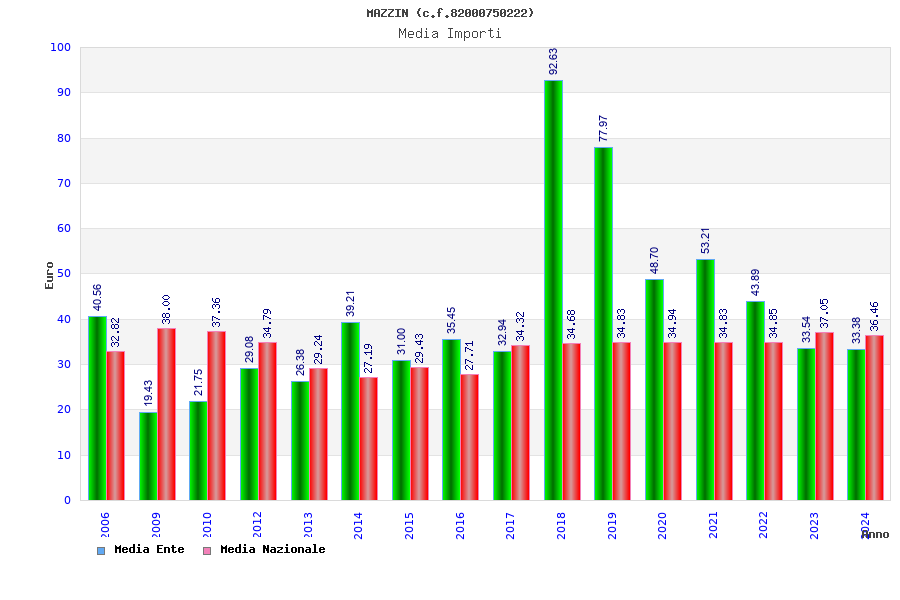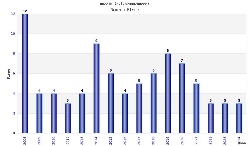 | Anno | Firme | Importi | Media | Naz. | Reg. | Prov. | Comu. |