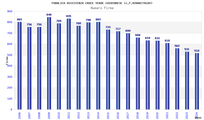 Anno Firme Importi Media Naz. Reg. Prov. Comu.
