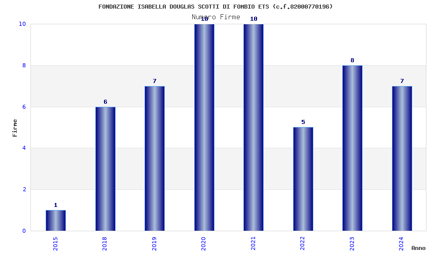 | Anno | Firme | Importi | Media | Naz. | Reg. | Prov. | Comu. |
