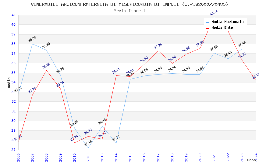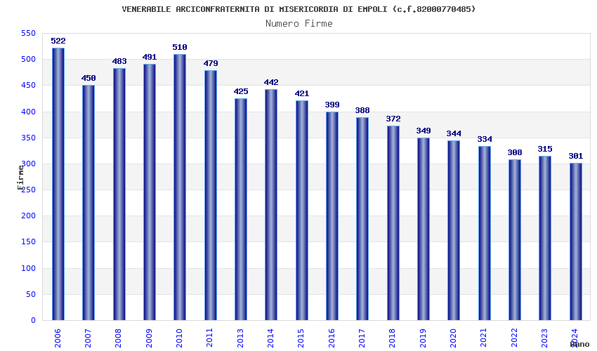 | Anno | Firme | Importi | Media | Naz. | Reg. | Prov. | Comu. |