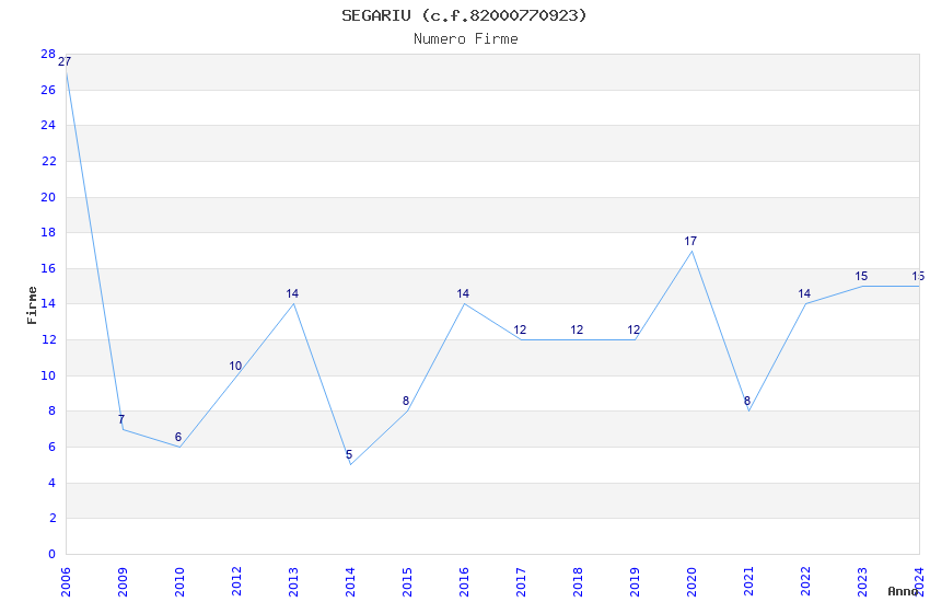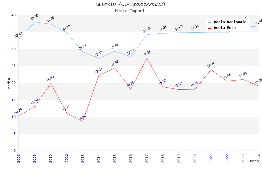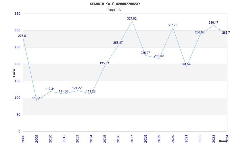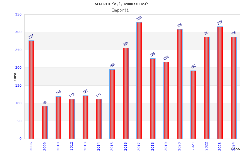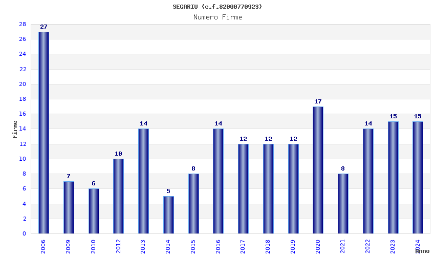 | Anno | Firme | Importi | Media | Naz. | Reg. | Prov. | Comu. |