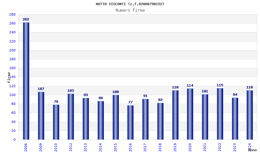 | Anno | Firme | Importi | Media | Naz. | Reg. | Prov. | Comu. |
