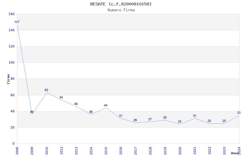 | Anno | Firme | Importi | Media | Naz. | Reg. | Prov. | Comu. |