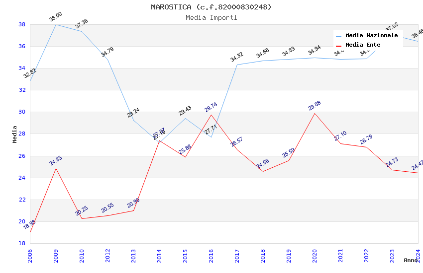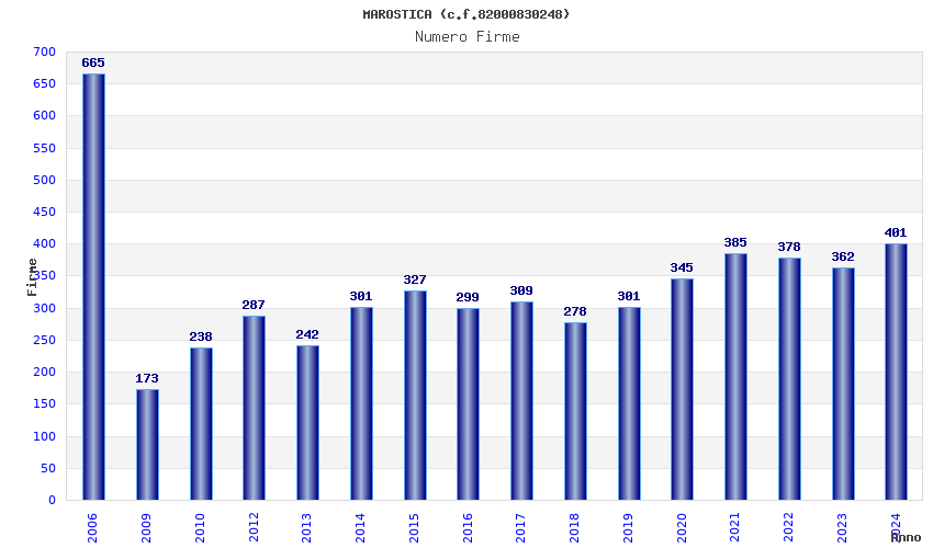 | Anno | Firme | Importi | Media | Naz. | Reg. | Prov. | Comu. |