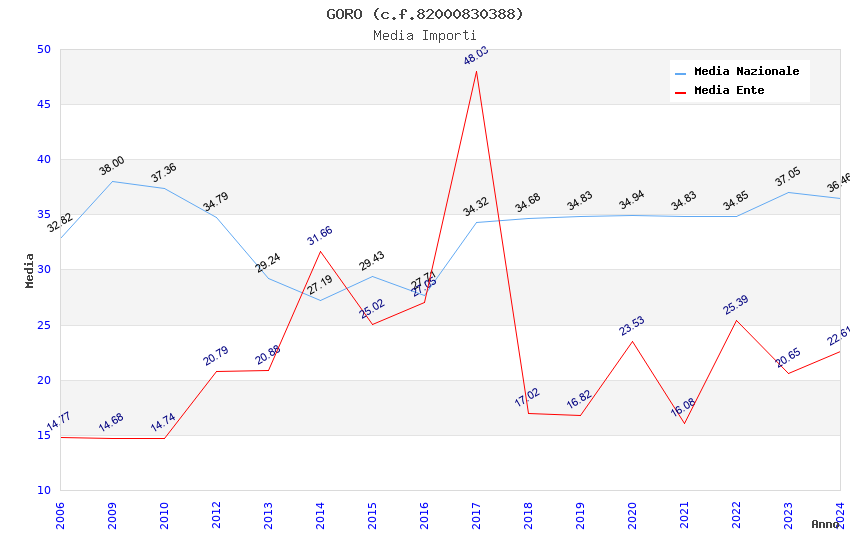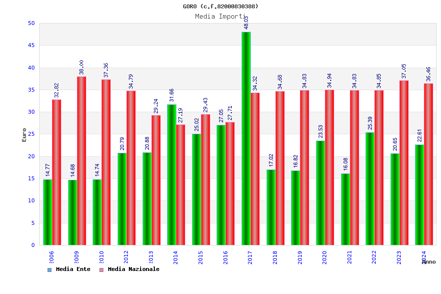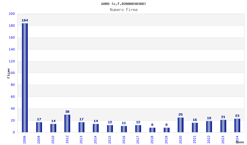 | Anno | Firme | Importi | Media | Naz. | Reg. | Prov. | Comu. |