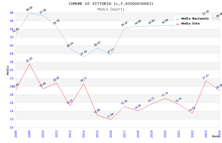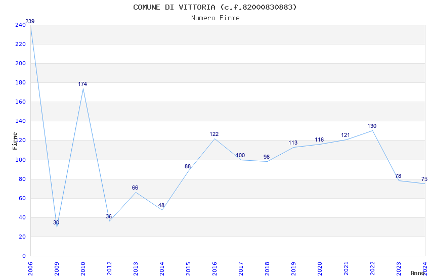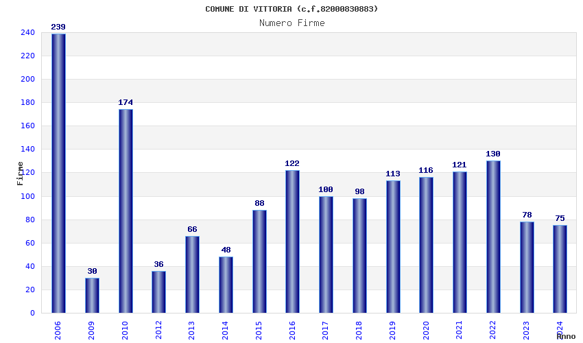 | Anno | Firme | Importi | Media | Naz. | Reg. | Prov. | Comu. |